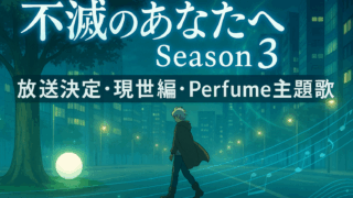 25’ 秋アニメ 【不滅のあなたへ Season3】放送日・あらすじ・キャスト・主題歌まとめ!Perfumeの新曲も解禁 アニメ「不滅のあなたへ Season3」が2025年10月からNHK総合で放送されます。本記事では、不滅のあなたへ Season3の放送日、あらすじ、主要キャスト、そしてPerfumeが担当する主題歌情報まで徹底的にまとめました。さらに、こ... 2025.09.29 25’ 秋アニメ